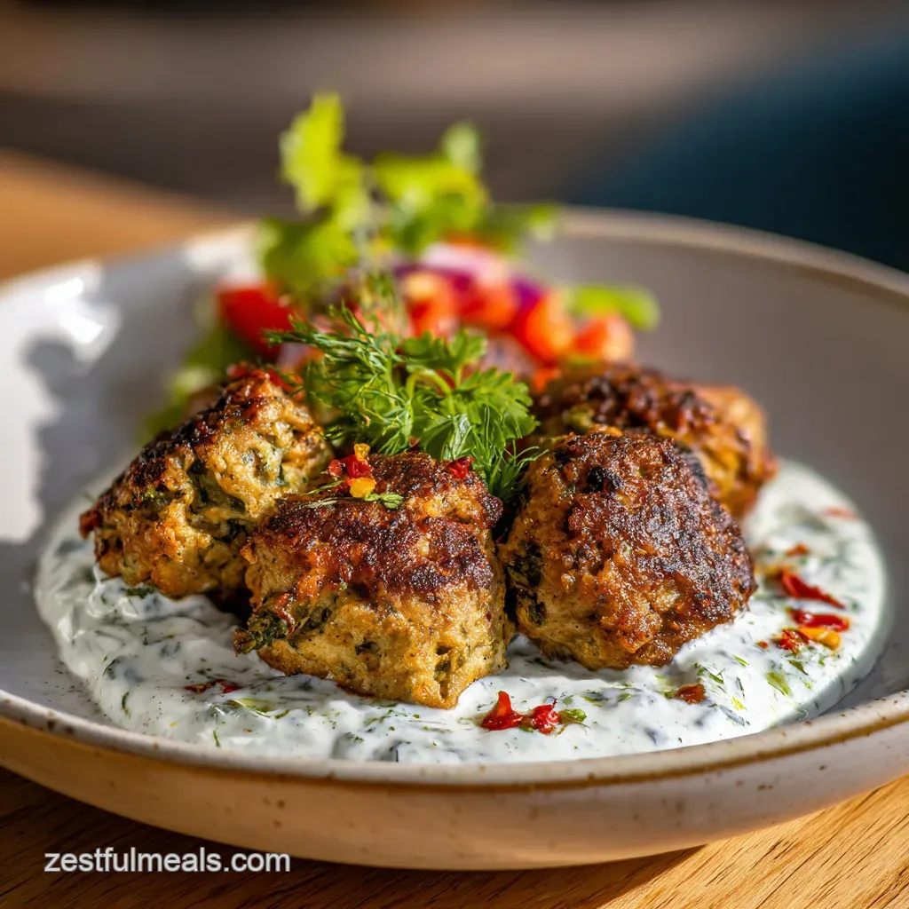 Sear the koftas in a very hot, heavy skillet to maximize the crust. This rapid high heat searing creates a crisp exterior, which contrasts beautifully with the cool, velvety texture of the yogurt sauce, a balance also important in dishes like our Garlic Parmesan Fries recipe.