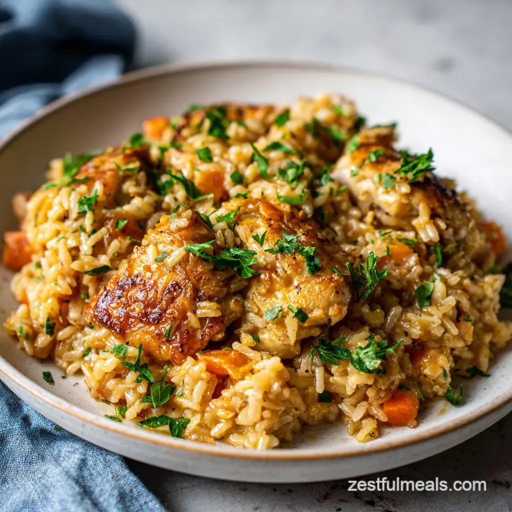 A one-pan, savory, seasoned chicken and rice dish. This classic pairing is ideal for busy weeknights because it requires minimal active cooking time and uses simple pantry staples for maximum flavor.