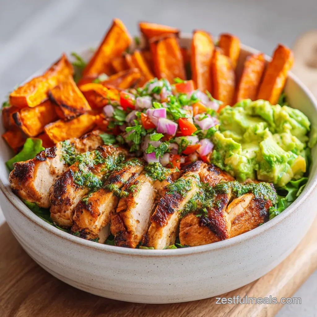 Grilled Herb Chicken Bowl with Sweet Potato Fries